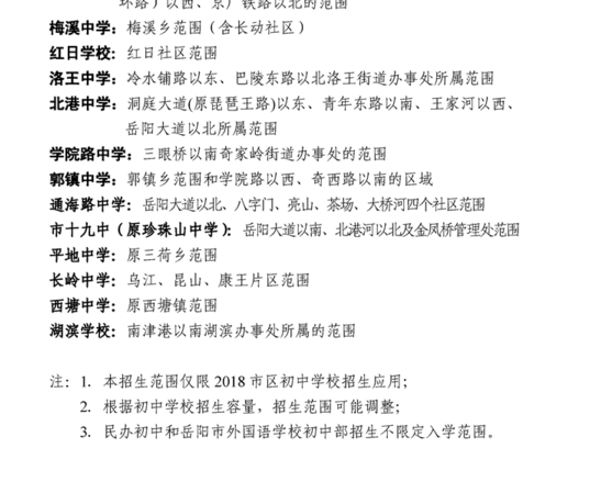 | 回复内容: | 家长您好! 市区初中招生入学按照“免试入学、划片招生、相对就近”的原则执行。招生范围由市教育体育局协调三区(岳阳楼区、岳阳经济技术开发区、南湖新区)教育局根据初中学校服务区内的适龄学生的人数划定。 2018年的初中招生政策和申报程序于6月初在市教育体育局官方网站、官方微信和市区主要媒体公布,凡按程序申报材料的,市初招办和各区教育局均会受理并认真调查核实房产、户口情况,确保每位义务教育适龄儿童有书可读。初中招生录取时,初中学校招生范围内同时持有市区户口和所属范围房产(房屋产权性质为住宅)的确保录取;其他情况的,在居住地所属初中学校容量许可的前提下安排就读,确因容量不足时,由市初招办统筹调剂安排就读。申报程序和需上交的材料如下: (1)申请登记 ★市区小学毕业生。在市区就读的小学毕业生由各小学组织填写《岳阳市市区小学毕业生登记表》,交验相关证件材料原件(证件有效期截止至2017年5月31日,下同),复印件粘贴在《岳阳市市区小学毕业生登记表》指定区域。 ★非市区小学毕业生。非市区小学毕业生就读市区初中,按“非市区小学毕业生申请就读岳阳市市区初中申请、招录程序”,由其父母(或法定监护人)向市初招办提出申请,填写《非市区小学毕业生就读岳阳市区初中学校申请表》。 (2)交验材料 ★市区有房产的:提供学生父母(学生本人)身份证、家庭户口簿、房产证(国土证)或房屋购买合同、宅基地证明、集资房证明、拆迁还建协议等原件及其他相关票据材料。 ★市区无房产的:提供父母的身份证、家庭户口簿、居住证(签发有效期一年以上,且于2017年5月31日前签发)。无居住证的,除提供家庭户口簿和房屋租赁合同、街道办事处(居委会)证明以及其他证明实际居所的材料外,还须提供相关工作证件,个体工商户提供营业执照、纳税票据等有效证件,进城务工人员提供劳务合同等。 ★非市区小学毕业生还需提供原就读学校出具的学校标识码、全国学籍号证明和学生手册。 因区域学校分布不均,市区内王家河以东现有2所初中学校,一是通海路中学(含原金凤桥中学),二是市十九中(原珍珠山中学),两校大致范围的划分是以岳阳大道为界,部分区域,根据生源实际情况进行了微调。市区初中招生文件里有关“就近入学”的解释是按照“相对就近”的原则进行分配,并不是绝对距离上的就近。 |