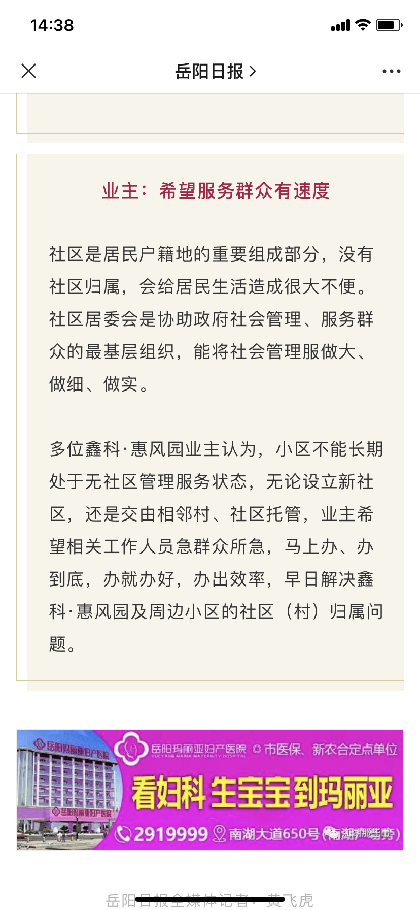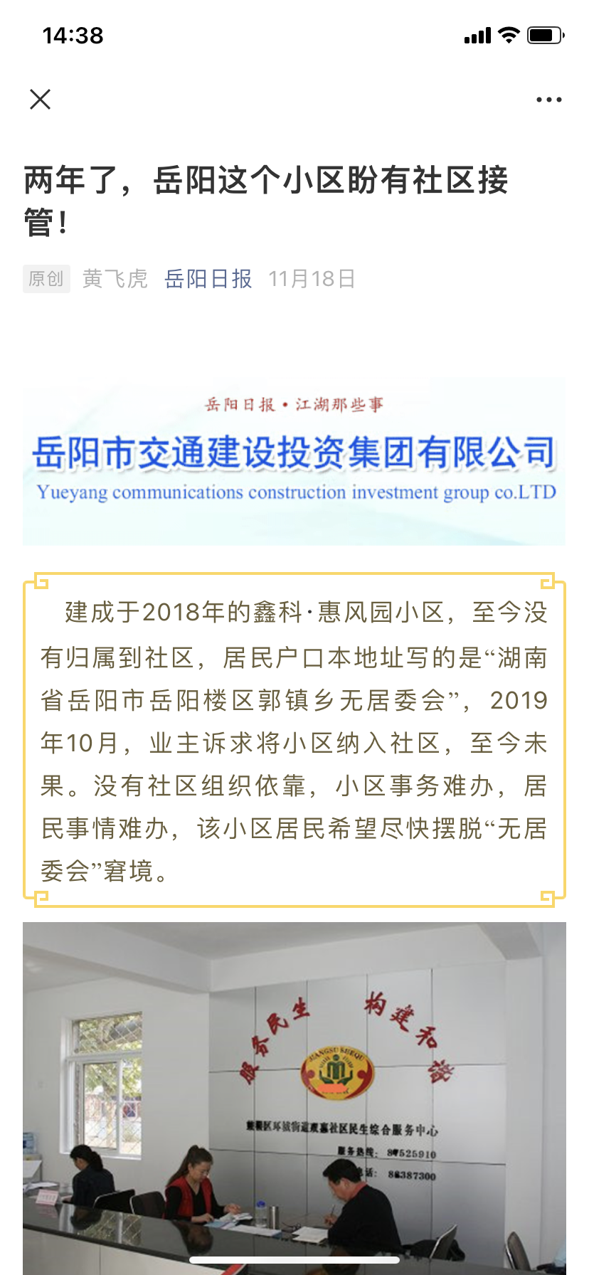 | 回复内容: | 关于市长信箱的回复: 经核实:领导很重视鑫科惠风园小区社区成立这事,上周分管副区长召开了专题办公会,郭镇乡街道办事处现正着手把小区住户录入网格系统,进行管理。 郭镇乡街道办事处 2020年12月7日 |