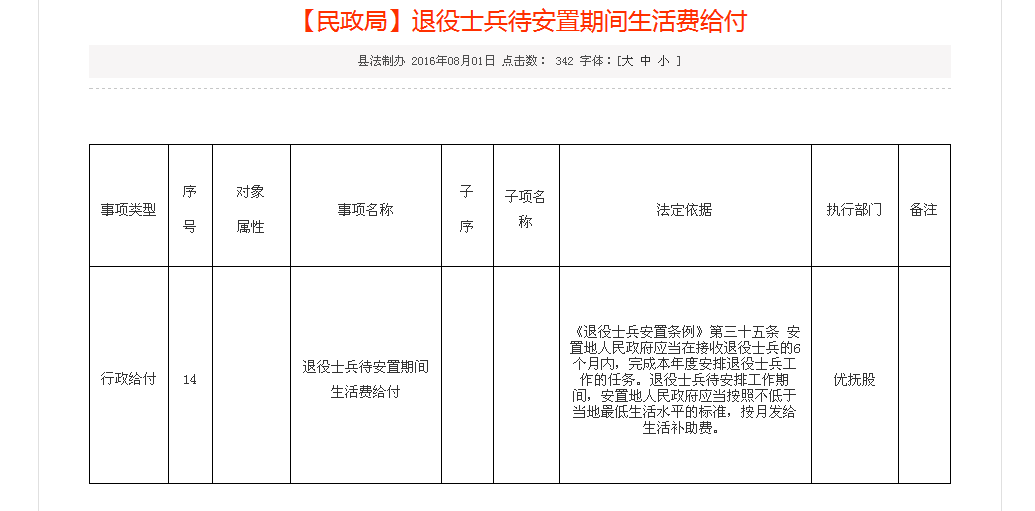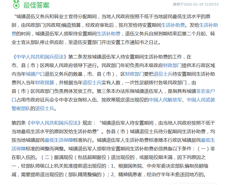 标题: 关于退伍军人待安置期间的生活补助